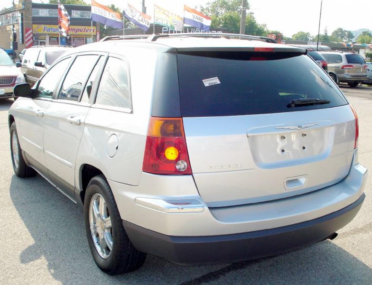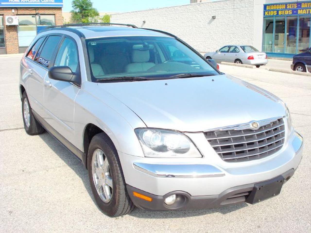 This pacifica is in excellent and mint condition. Very well maintained, very clean from in and out. Top of the line. 6 passenger, only 132,000km on it. fully loaded. SUN ROOF, Navigation system, auto climate control. DVD ENTERTAINMENT PACKAGE. alloy wheels. Leather seats, power/ heated seats, memory seats, power heated mirrors, third row seats, keyless entery, security system, power windows, power locks, power mirrors, cruise control, abs, tcs, 6 cd/dvd changer, dual air control, and lot lot more....... CERTIFIED AND E-TESTED.